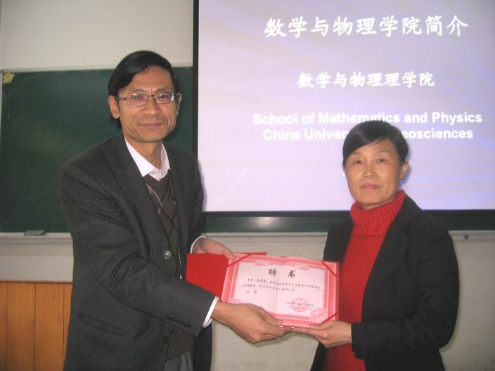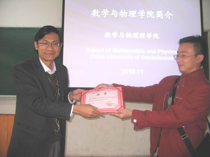 首先,刘安平经理代表中国地质大学聘请了数信公司张青教授、张清芳教授、廖小勇副教授作为中国地质大学的兼职硕士生导师。接着刘教授对中国地质大学数理公司的概况做了简要的介绍,随后刘教授以“时间尺度”的概念作为本场报告的切入点,引入基于比率的两种群捕食——被捕食系统微分方程,生动而形象地刻画了脉冲理论在实际中的应用。