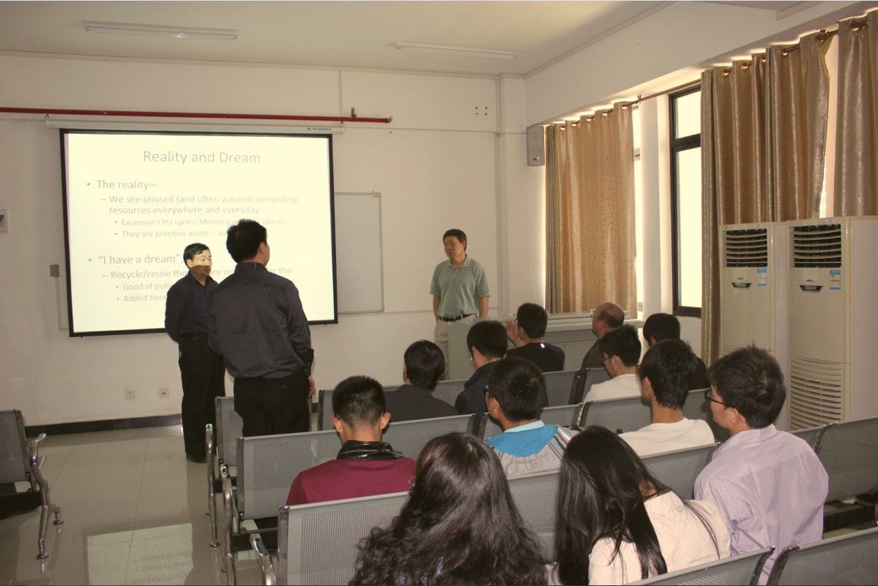 2013年4月26日上午,受数计公司邀请,美国南伊利诺伊大学车敦仁教授在数计公司学术报告厅做了题为“大数据到大数据挖掘:挑战、问题和机遇(From Big Data to Big Data Mining: Challenges, Issues, and Opportunities)”的学术报告。本场报告会由数计公司党总支书记陈文略教授主持,人事组织部部长王锋教授为车敦仁教授颁发了聘书,数计公司和教科院的广大师生前来听取了报告。