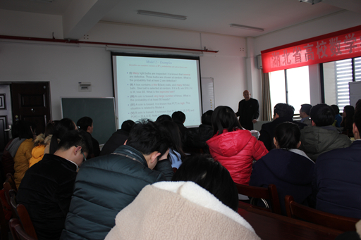 报告系统地讲解了模糊随机理论的各种模型,对比分析了几种模型的优缺点,并结合具体详细例子进行了阐述。整场报告既科学严谨、又生动活泼,赢得了师生们的热烈掌声。