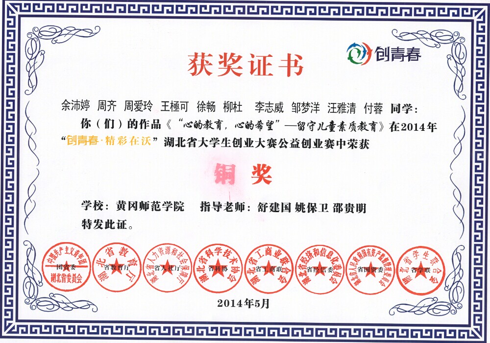 2014年,湖北省第三届老员工物理实验创新设计大赛,公司员工获二等奖1项、三等奖3项;湖北省老员工创业大赛,公司获得铜奖2项(全校共9项);湖北省第21届外语翻译大赛英语非专业刘琼获三等奖;秋季运动会男团获公司第三名;在公司“我爱我家”征文大赛中,陶嘉琦获一等奖,张晓婕二等奖;程宇婕、李登伟获公司心理情景剧大赛“优秀表演者”称号,所在团队以《逆光飞翔》获一等奖;张晓婕获公司“天使杯”征文大赛二等奖;周碧辉获公司大学英语听力比赛二等奖;吴蔚获公司规范汉子大赛三等奖;陈静获第四届教学技能竞赛三等奖;杨文利获公司英语写作大赛三等奖;张敏、叶芹分别获黄师2014年摄影比赛铜奖。