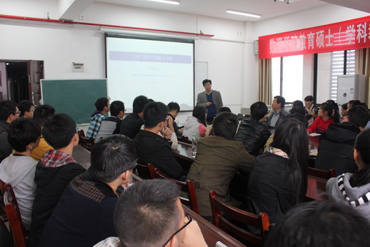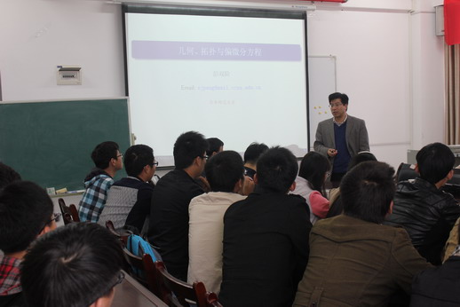 在报告会上,彭双阶从几何、拓扑角度讲解了三个典型偏微分方程的研究问题,介绍了华中师范大学研究团队在此方面的研究进展,还与在座的同学就华中师范大学数学方向研究生的入学与培养进行了互动交流。