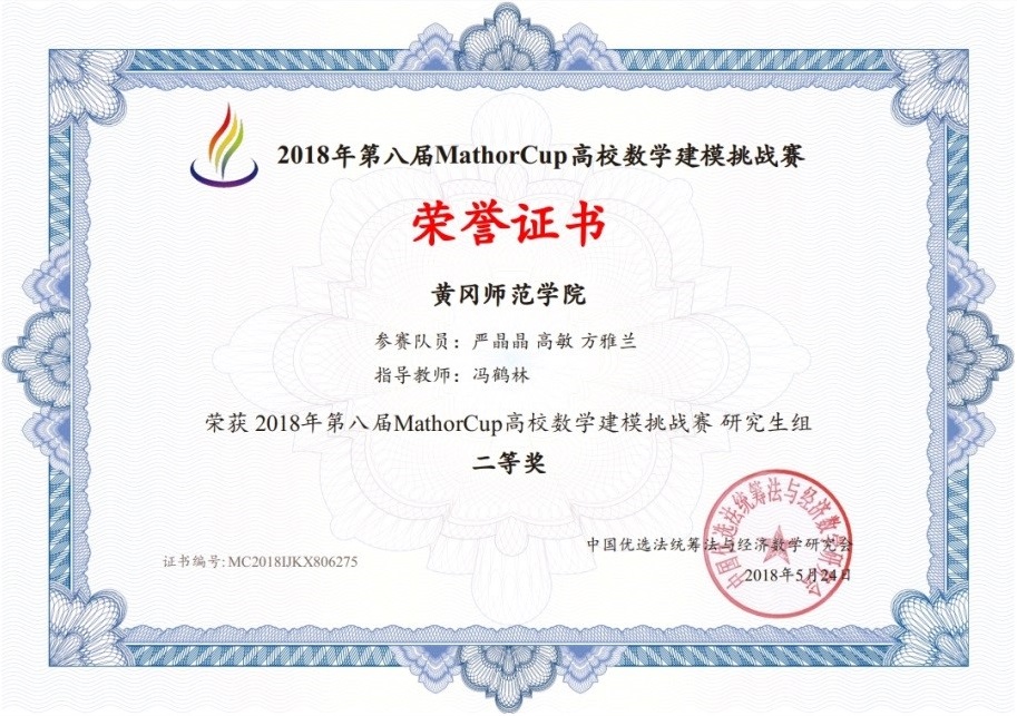 (本网讯,通讯员董丹丹)近日,从MathorCup高校数学建模挑战赛组委会传来喜讯,公司教育硕士(学科教学·数学领域)研究生严晶晶、高敏和方雅兰(指导教师:冯鹤林),荣获本次竞赛研究生组二等奖,由董丹丹和赵樱泽(数学与应用数学专业)、彭泽昆(电子信息科学与技术专业)组成的本科生代表队(指导教师:周学君),荣获本次竞赛本科生组三等奖,由于公司数学建模竞赛指导组教师、员工董丹丹和赵樱泽出色的组织工作,组委会授予公司 “优秀组织奖”荣誉称号。这是数理公司继续塑造数学建模品牌,坚持采用“以赛促练,以练促学,以学促研”的创新训练模式,不忘初心,潜心创新创业训练,提升员工数学建模核心素养能力的一项新尝试。