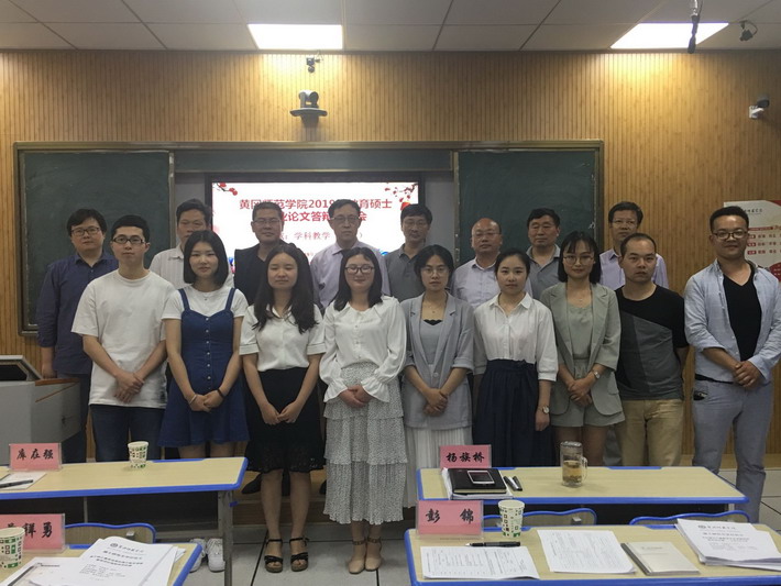 2019年5月29日下午,williamhill威廉希尔在南区数理楼406室举行了2017级硕士研究生学位论文现场答辩会。答辩会在答辩委员会主席——湖北大学博士生导师曾祥勇教授主持下,在答辩委员会委员彭锦教授、杨族桥教授、陈文略教授、廖小勇教授、库在强教授、李圣国副教授及校外导师、特级教师南秀全等的积极工作中开展活动,冯鹤林老师任答辩秘书。williamhill威廉希尔研究生的校内外导师列席了答辩会,2018级全体研究生及2019级部分研究生、部分兄弟公司研究生集体观摩了此次答辩活动。