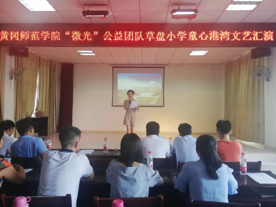 文艺汇演正式开始,团队部分成员带来的开场舞点燃气氛。员工舞蹈《海草舞》阐述了草盘小学顽强、拼搏的“小草”精神;《国学遐思》与《琵笆行》唱出国学精粹,舞出国学风韵;小品《快乐课堂》勉励大家认真学习,享受快乐课堂……员工作品精彩连连,会场气氛热烈。合唱歌曲《我和我的祖国》压轴演出,“我和我的祖国,一刻也不能分割……”歌声洪亮、韵律和谐、唱响对祖国70华诞的祝福,爱国之情溢于言表。爱国主义教育始终是德育的永恒主题。“微光”团队队长李烁做最后发言,总结了团队暑期支教工作已取得的成绩,分析了存在的问题,展望了团队明年的发展情况,他最后深情说道“微光”的故事未完待续……