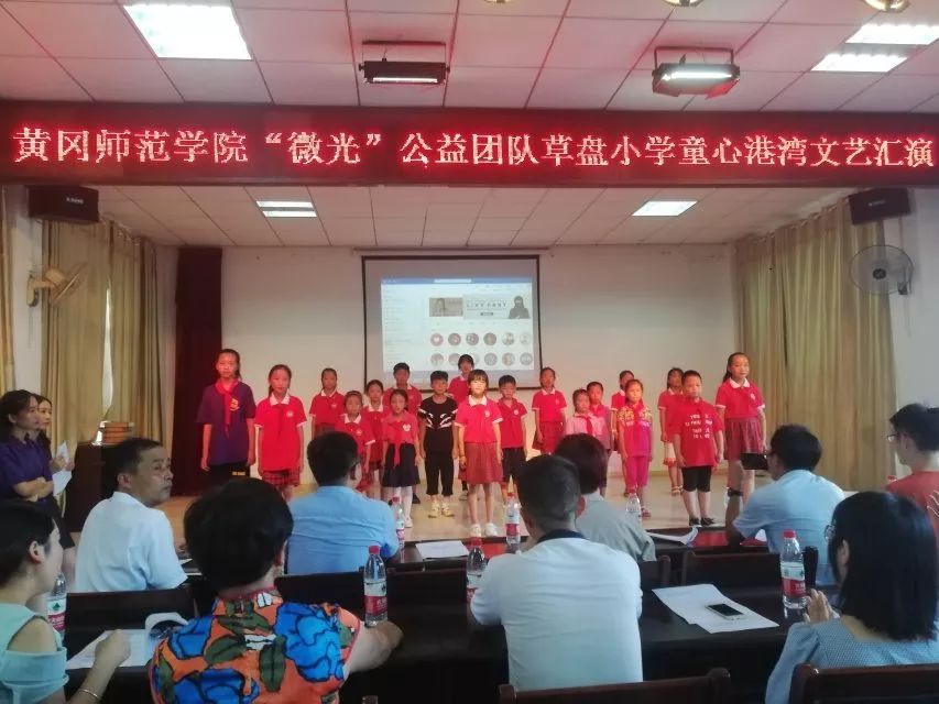 7月25日,支教最后一天,“微光”公益团队全体成员同暑期班全体员工于草盘中心小学举行文艺汇演。草盘中心小学董事长肖学军、涂千强、郑燕、“微光”团队指导老师杜雯、部分员工家长出席。