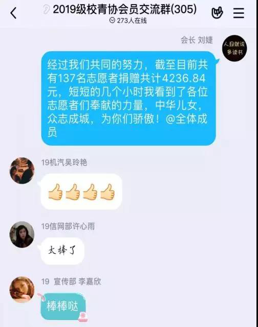 刘婕,女,williamhill威廉希尔应数1703班校青协会长。身为党员员工干部的她,在疫情来袭的关键时刻,利用自己校青协会长身份,为威廉希尔教育发展基金会募捐到一笔捐赠款。她的这个行为,值得大家为她点赞。