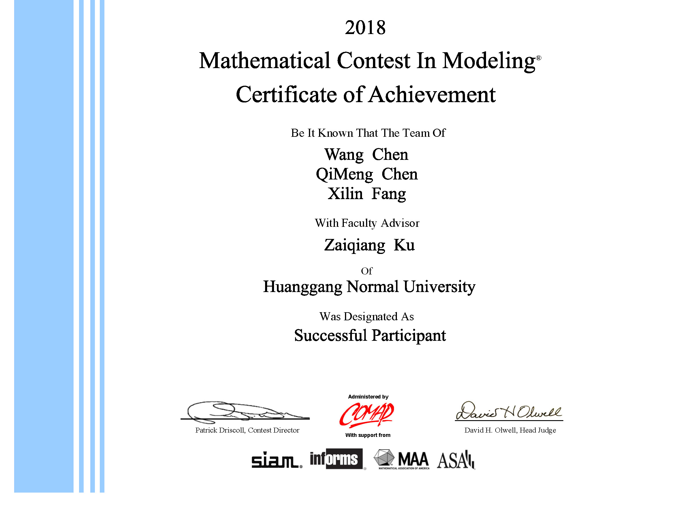 本网讯(通讯员郭佩)近日,从2018年国际老员工数学建模竞赛(MCM/ICM)组委会传来喜讯,由公司“信息与计算科学”卓越工程师班蔡思远同学和其他两名员工组成的2015级数模竞赛参赛代表队(编号:MCM74276,指导老师:库在强)荣获二等奖(Honorable Mention))。这是公司继续塑造数学建模品牌,坚持采用创新训练模式,不忘初心,砥砺潜行,提升老员工数学建模核心素养能力的一项新尝试。