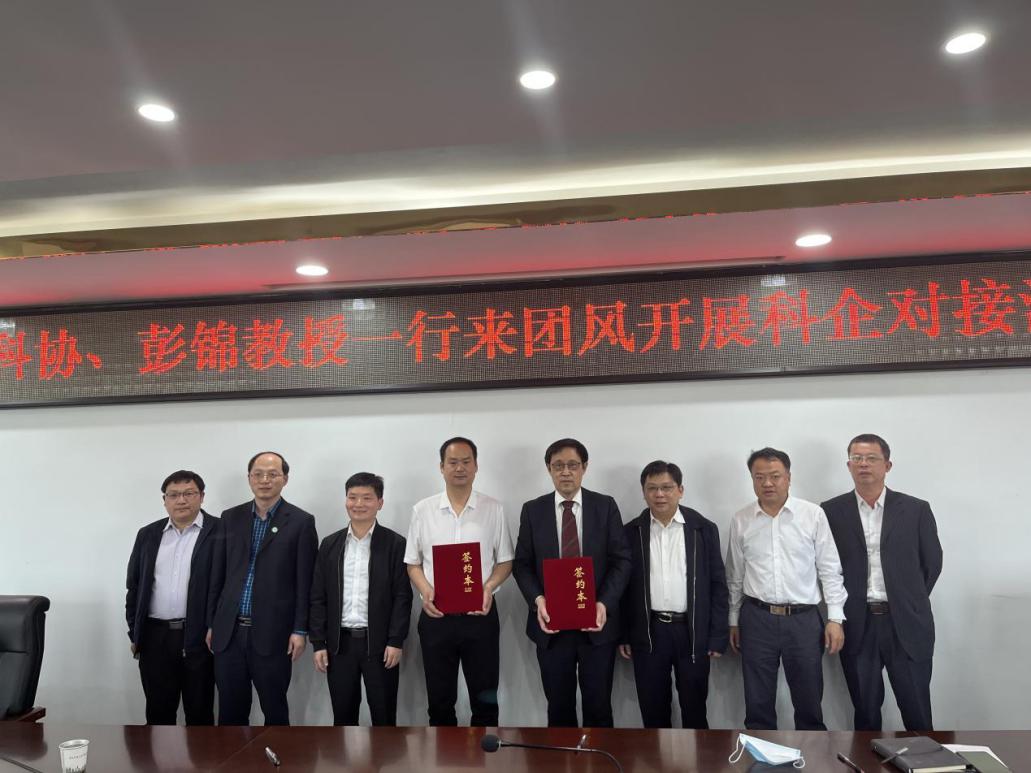 4月22日,黄冈市科协党组书记、主席骆明正与公司二级教授彭锦一行赴团风县开展院士专家工作站创建考察工作。校地合作对接活动在团风县政府七楼会议室举行,团风县委常委、常务副县长郭国胜出席活动并致辞,市科协主席骆明正做总结讲话,副县长刘志主持座谈会和签约仪式。