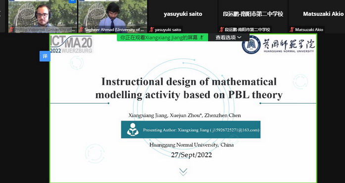 2022924日至27日,第20届数学建模与应用教学国际会议(ICTMA20)在德国Würzburg 举行。williamhill威廉希尔2021级研究生蒋湘湘应邀参加线上会议,并作全英文大会报告。来自全世界近200名从事中小学、高等公司的数学建模教学的研究人员和教育工作者参加大会。