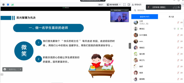 11月24日,根据教务处公司产品节系列活动工作安排,公司邀请黄冈市外国语公司黄宝红老师作题为《为人师表教书育人——数学老师的职业体会》的专题讲座。公司160多名师范生线上聆听指导。