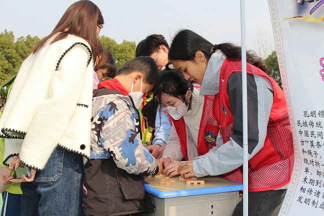 数学不仅是智者的游戏,更是游戏的智者。为最大程度展现中小员工思维活力,针对此次活动共展台出了十种数学游戏——数独游戏、益智图十三板、黑白魔斗、平衡迷宫、孔明锁三十六计、重力四子棋、孔明锁等。孩子们积极参与此次活动,他们开心地聚在一起讨论方法,探究奥秘,在破解数学谜题的过程中,感悟数学魅力。