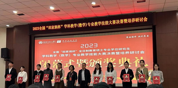 10月29日,由“田家炳杯”全日制教育硕士专业学位研究生教学技能大赛专家委员会指导,河南师范大学主办的2023年全国“田家炳杯”全日制教育硕士学科教学(数学)专业教学技能大赛在河南新乡圆满落下帷幕。公司2022级研究生曾婷(指导老师:何春玲)获三等奖、李钊(指导老师:江芹)和张金竹(指导老师:孙幸荣)获优秀教学设计奖。
