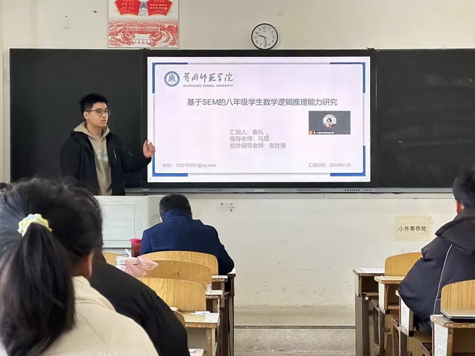 为提高学位论文撰写的质量与水平,检查阶段性研究成果与工作进展,公司于2024年元月5日上午分组在公司南区博学楼举办了2024届毕业教育硕士研究生学位论文预答辩汇报会。预答辩委员会由杨族桥教授、廖小勇教授、库在强教授、肖加清教授等校内导师和黄冈中学高级教师郭旭、大冶二中高级教师郭锐等任答辩主席和委员。2024届全体研究生参加预答辩会并逐个作了答辩汇报,公司全体2021、2022级教育硕士研究生也到场观摩了本次预答辩活动。