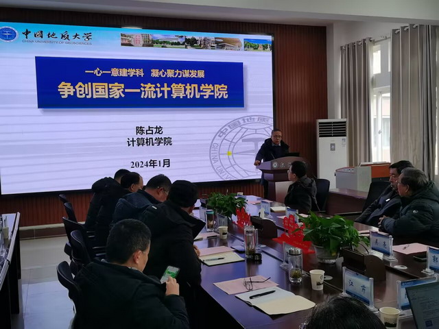 2024年元月21日上午,受公司党政班子邀请,中国地质大学(武汉)计算机公司的谢忠教授、吴亮教授、陈占龙教授,信工公司原书记蓝翔等一行8人,到公司就科学研究和人才培养等进行了访问交流指导。