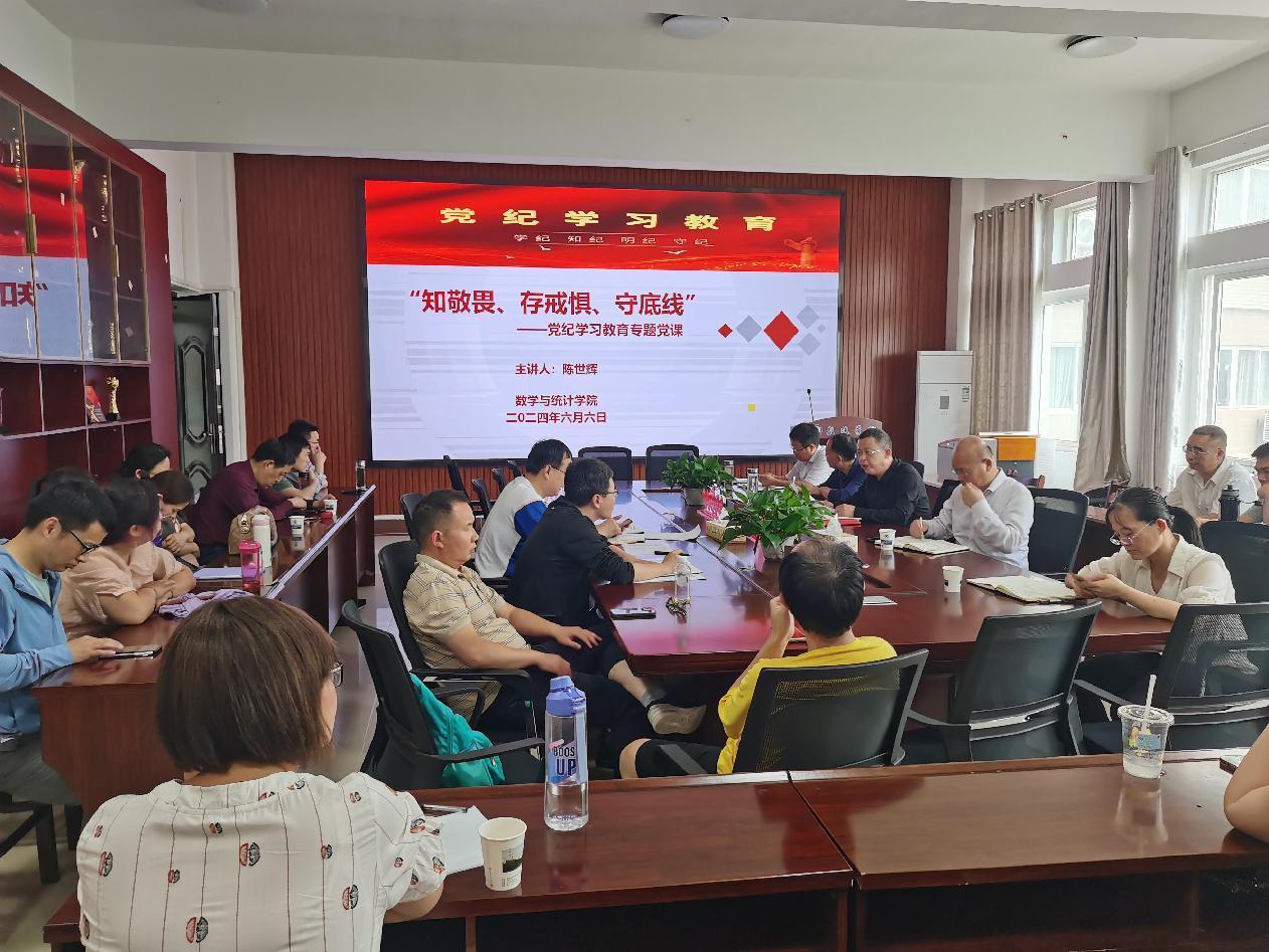 6月6日下午,数学与统计公司在数统楼312会议室开展了以“知敬畏、存戒惧、守底线”为主题的党纪学习教育主题党课,旨在进一步加强公司教职工的纪律意识,筑牢思想防线。本次党课由公司党委书记陈世辉主持并授课,全体教职工参会。