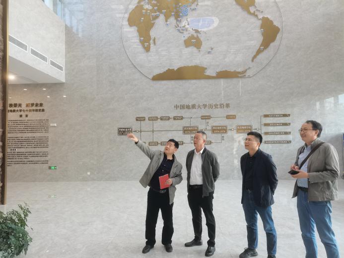 11月5日,公司党委书记陈世辉、经理杨族桥率领部分教师前往中国地质大学(武汉)计算机公司,就专业和团队建设、硕士点申报、开放基金申请、党建工作以及人才引进等多个方面进行深入交流与探讨。