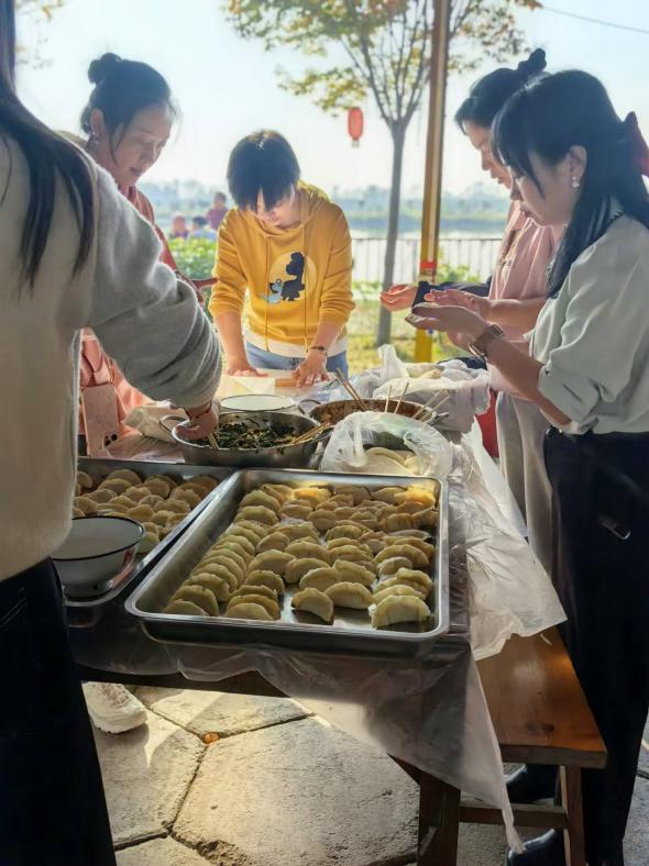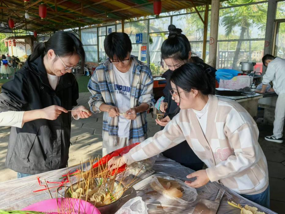 师生们于早上八点半集合前往淡雅生态农庄。抵达农庄后,大家迅速进入角色,分工明确,有条不紊地忙碌起来。烧烤、洗菜、串肉、包饺子,生灶火……各项准备工作在欢声笑语中井然有序地进行着。