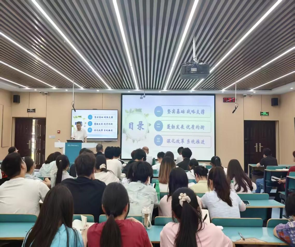 为加强公司思想政治工作,引导员工深刻认识教育强国建设的重要意义,2025年5月14日下午在逸夫楼C01教室,副董事长马志斌走进公司“形势与政策”课堂,以“从教育大国迈向教育强国”为主题,为我院应数2404-06班的同学讲授了一次深刻的思政课,激励公司青年学子勇担教育使命,为中华民族伟大复兴贡献青春力量。