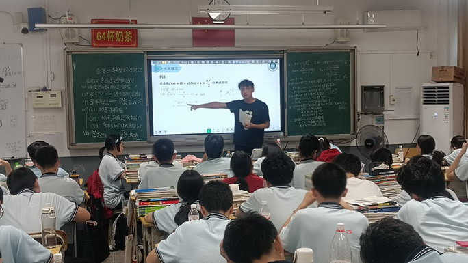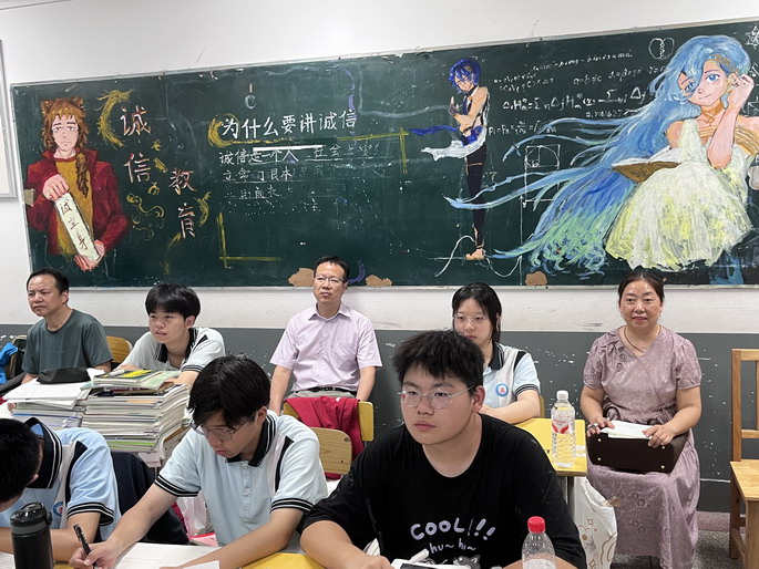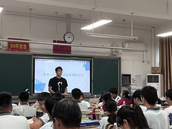 廖小勇和方正首先分别听取了学科教学(数学)研究生万千明在高二(9)班所授的公开课《导数应用——含参函数的单调性讨论》,学科教学(语文)研究生李雪梅在高一(8)班所授的公开课《装在套子里的人》。