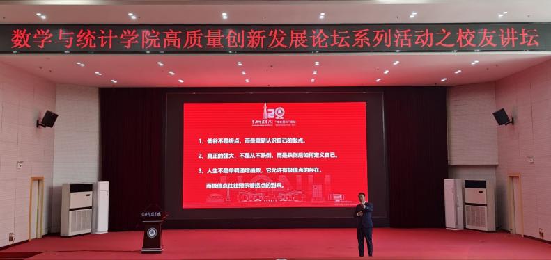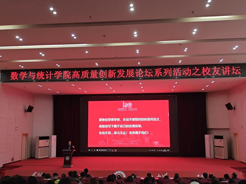讲坛最后,戴申辉以三句箴言寄语师生:“奋斗的终点是价值实现,融入集体方能创造无限可能,真正的优秀是离开校园后仍能照亮他人。”他鼓励学弟学妹们,数统学科的逻辑思维与坚持不懈的精神是人生的“硬底牌”,不必畏惧成长中的挑战,每一次困境都是蜕变的契机,跨过“极值点”,便是人生的“拐点”。